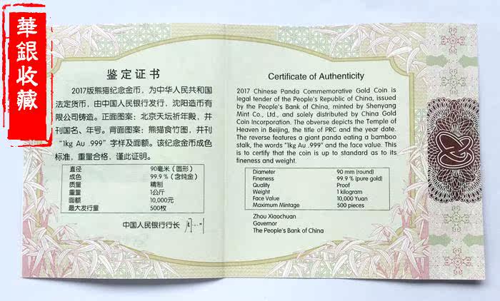 【Коллекция Huayin】 2017 1 кг панды памятной золотой монеты Панда Золотая монета Золотая кошка Bao Qiangpinquan Fake One Paie Devy за десять