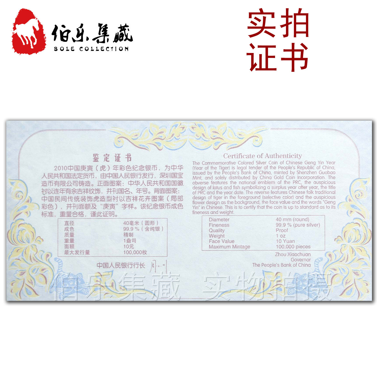 [Новый Баозхен] Сертификат периода оригинального коробки 2010 1 унция Тигр Год тигровой серебряной монеты 999 Серебряный серебряный тигр