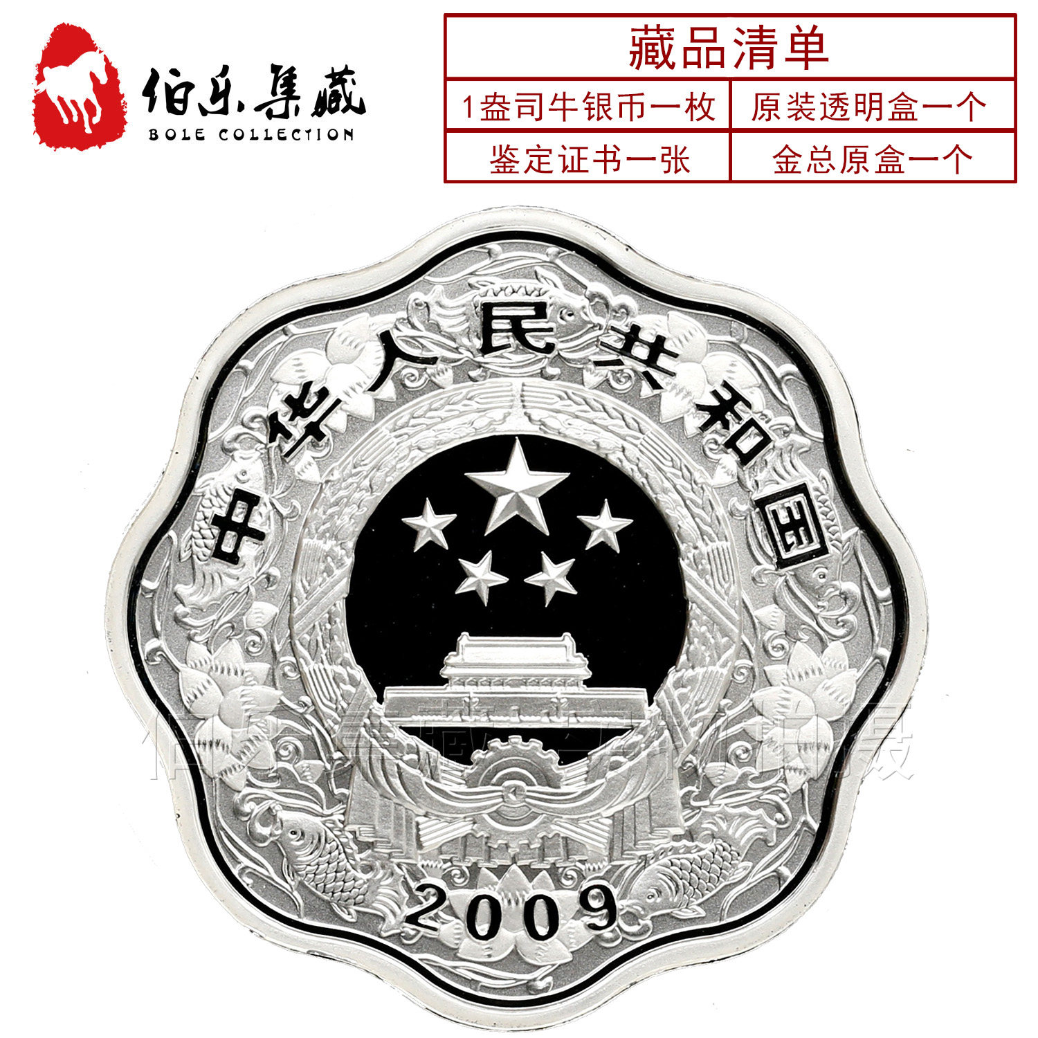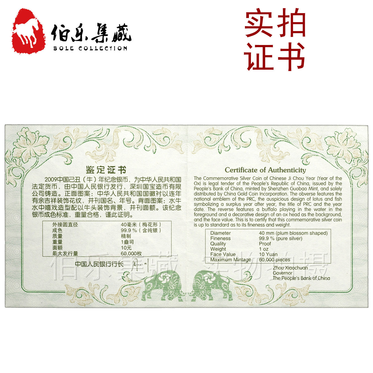 [Новый Баозен] Оригинальный сертификат коробки 2009 1 унция Niu Niu Zong Mei Flower Coin 999 Pure Silver Plom
