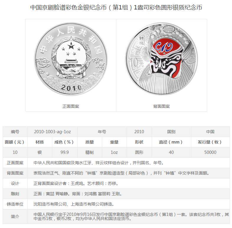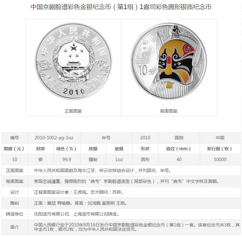 [Новая подлинная] Оригинальный сертификат коробки 2010 1 унция китайской пекинской оперы Facebook цвет цвет первой серебряной монеты первого цвета