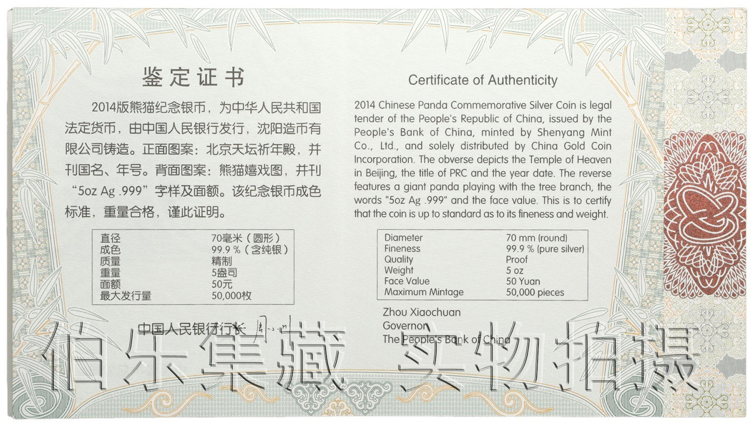 [Новый Баозен] Оригинальный сертификат периода коробки 2014 5 унций панды серебряной монеты серебряной кошки мемориальной монеты