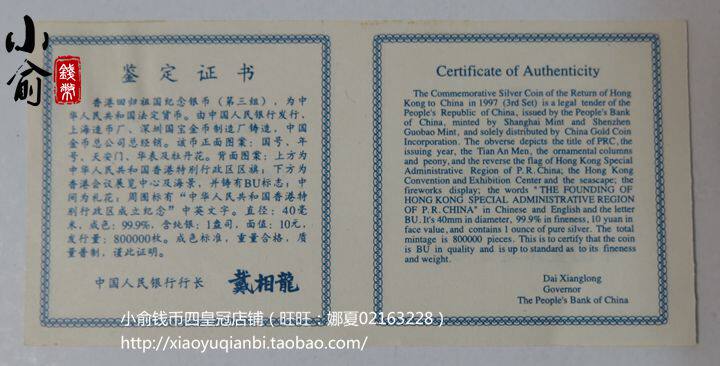 В 1997 году Гонконг вернулся в родину, чтобы отметить серебряные монеты.