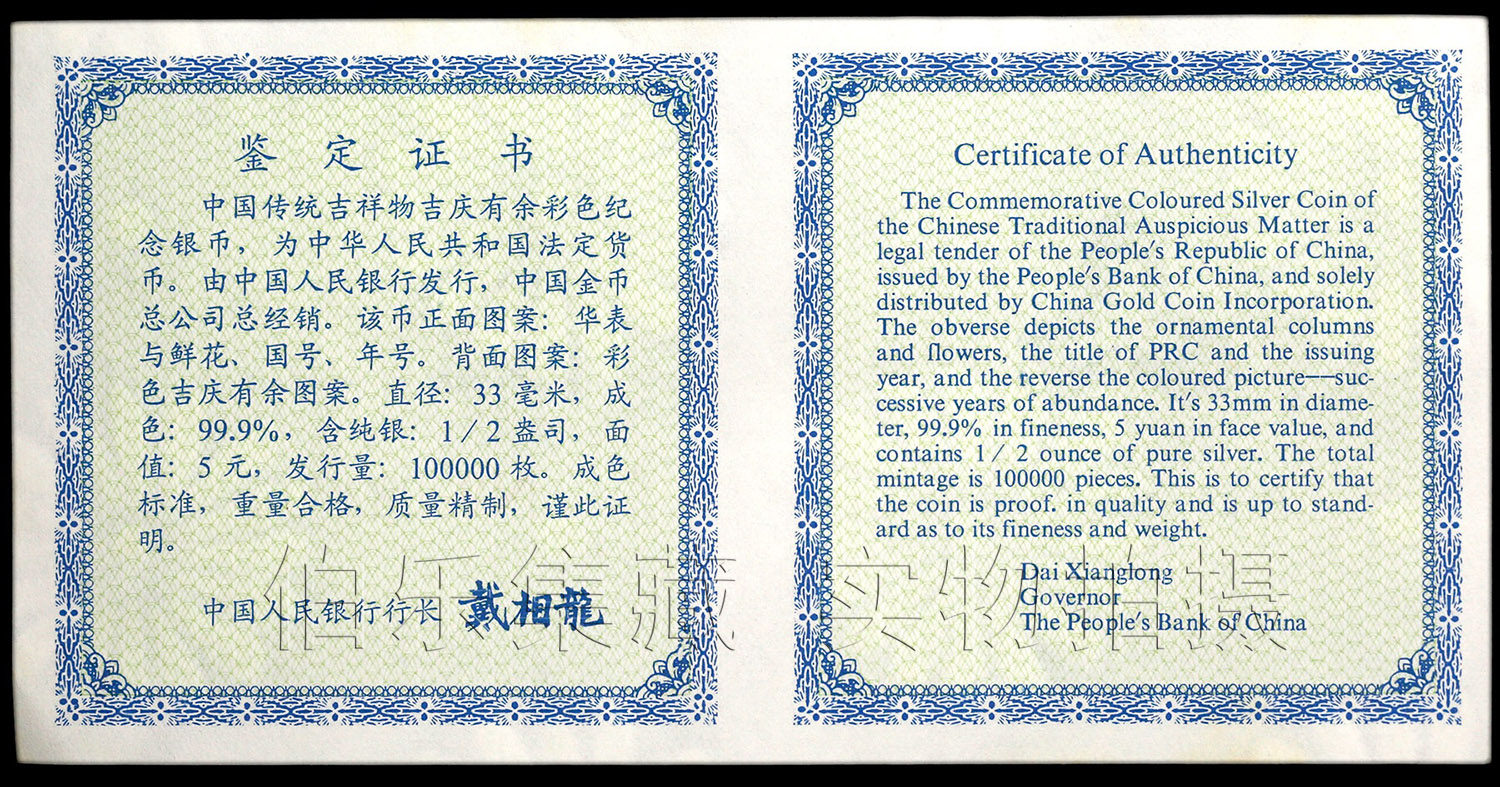 [New Bazhen] Сертификат с 1/2 унции в 1997 году, Jiqing, есть серебряные монеты Yucai Caichi qing
