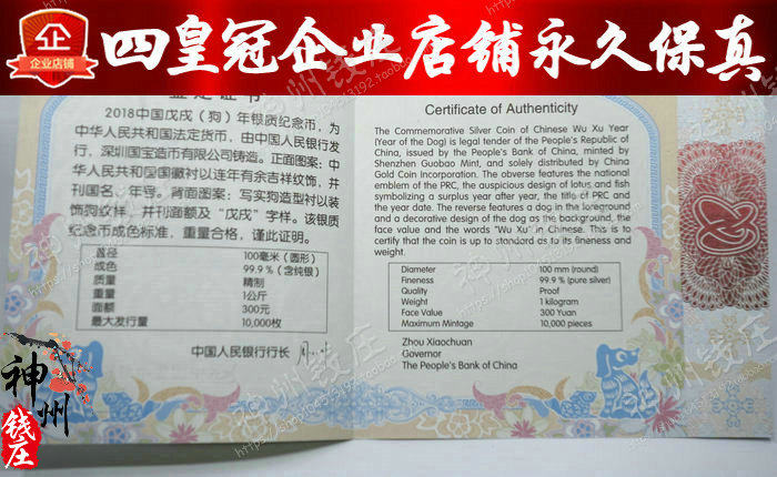 1 кг круглых серебряных монет представляют собой изысканные монеты, в том числе 1 кг серебра стерлинга, диаметр 100 мм, 300 юаней, 99,9%и максимальное циркуляцию 10 000 штук.