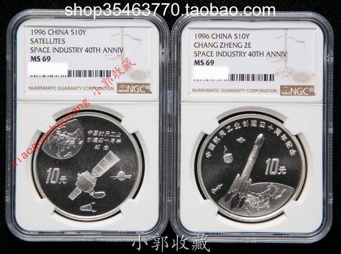 Серебряная монета 1996 года, посвященная 40-летию аэрокосмической промышленности. Аэрокосмическая промышленность. Серебряная монета весом в 1 унцию.