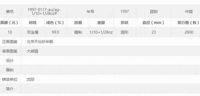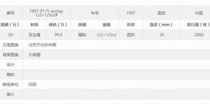 1997 Panda Gold Silver Coin Panda Gold Coin Panda Coin Panda Двойная металлическая монета NGC68 Валюта