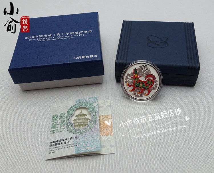 2018 Зодиак -годом Цветная серебряная монета .30 грамм. Цветная собака года собаки. Цветная серебряная собака.