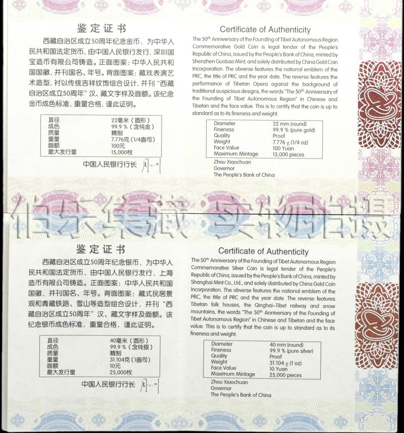 [Новый Баозен] 50 -летие создания Тибетского автономного региона в 2015 году, золотая и серебряная монета 1 золото+1 серебро