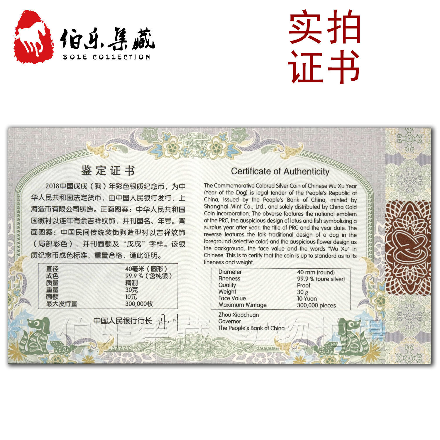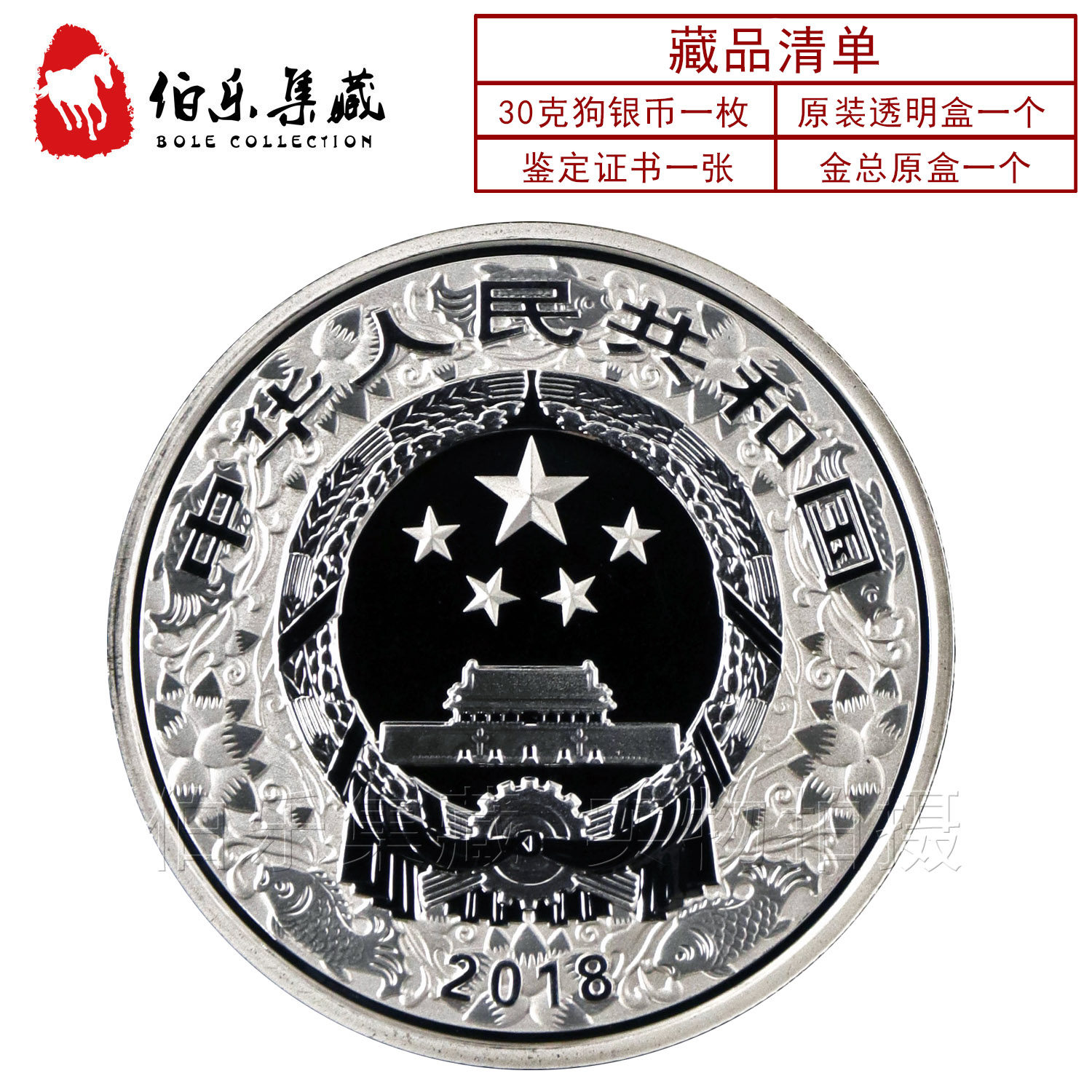 [Новый Баозен] Оригинальный сертификат периода коробки 2018 г. 30 грамм собак Новая годоватая китайская серебряная монета с серебряной монетой