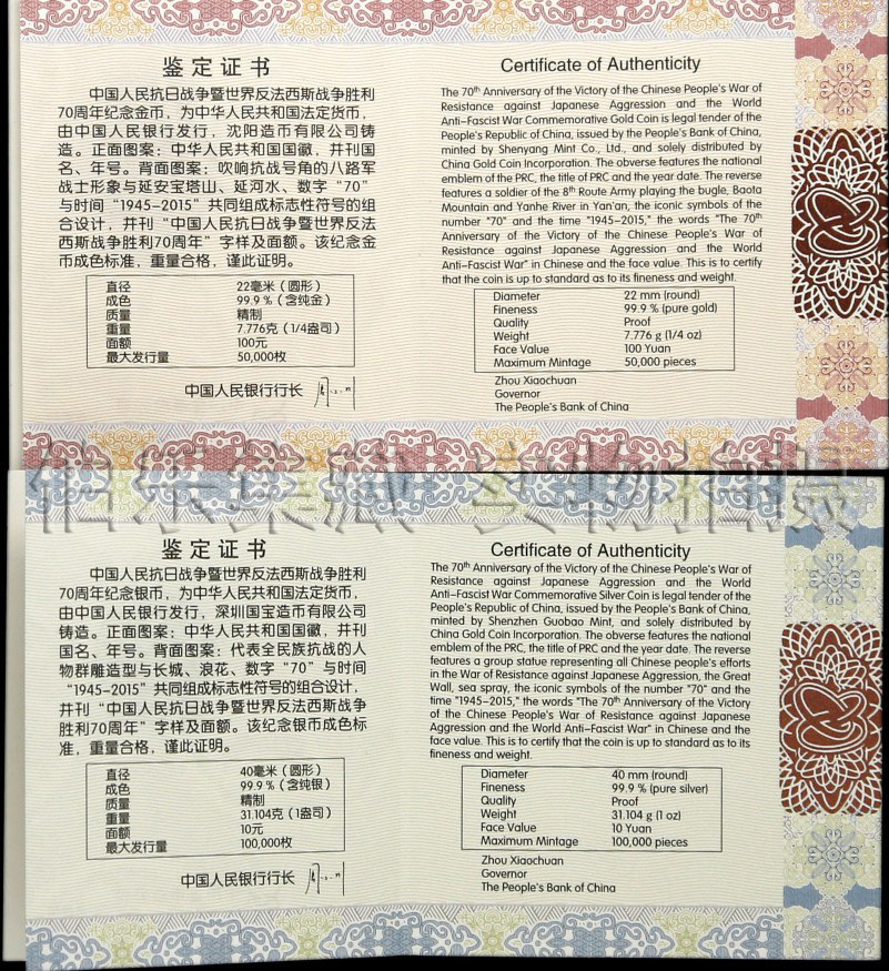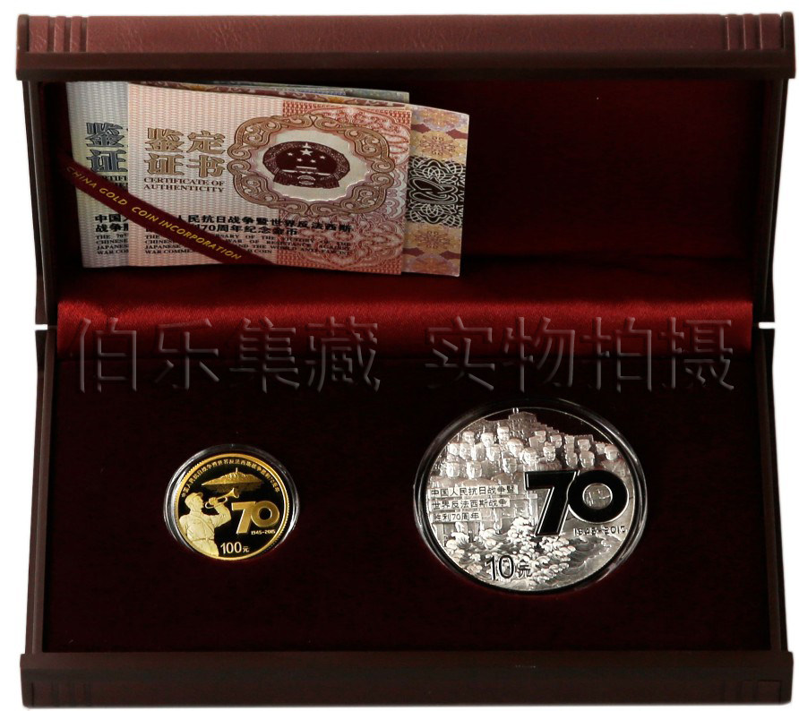 [New Baoozhen] Оригинальный сертификат коробки 2015 Анти -японская война победы 70 -летие золотой и серебряной монеты