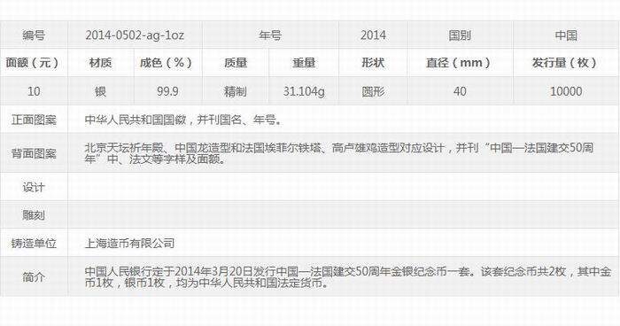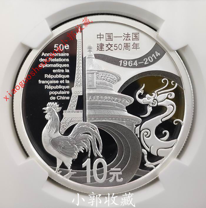 В 2014 году 50 -летие в установлении дипломатических отношений между Китаем Францией, золотыми и серебряными монетами, Китай -френх