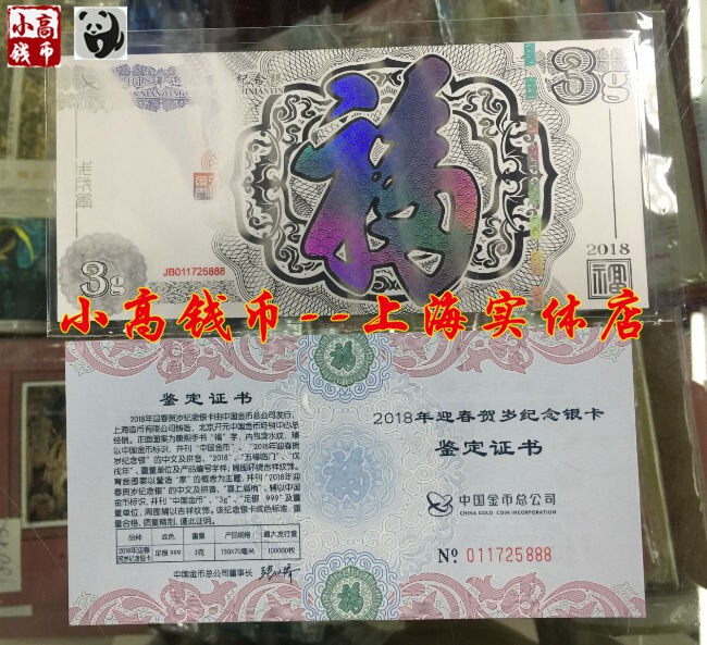 2018 год годовой серебряная карта Memorial Card 3 грамма новогодней серебряной банкноты 3G Благословение Угля Золото Золото 3 грамма серебряных банкнот