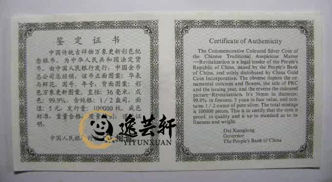 Выпуск: 100 000 штук.Кастинг: Шанхайский монетный двор