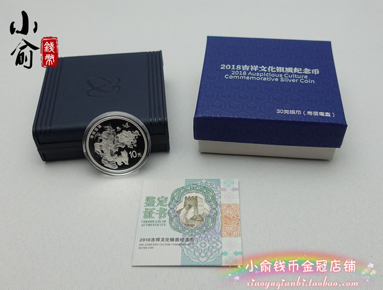 Четыре группы благоприятной культуры в 2018 году-Shouju 耄耋 .30 грамм. Серебряная монета благоприятная культура.