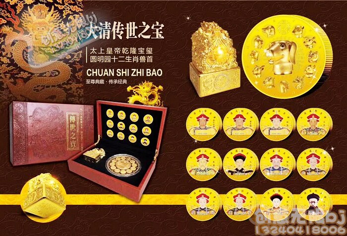 Daaqing 12 Император Парк Капто Монета Юанминг Садовый Зверь Первый двенадцать мемориал зодиака 1 кг Qianlong Screen Seal