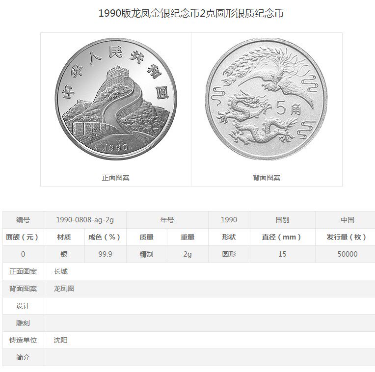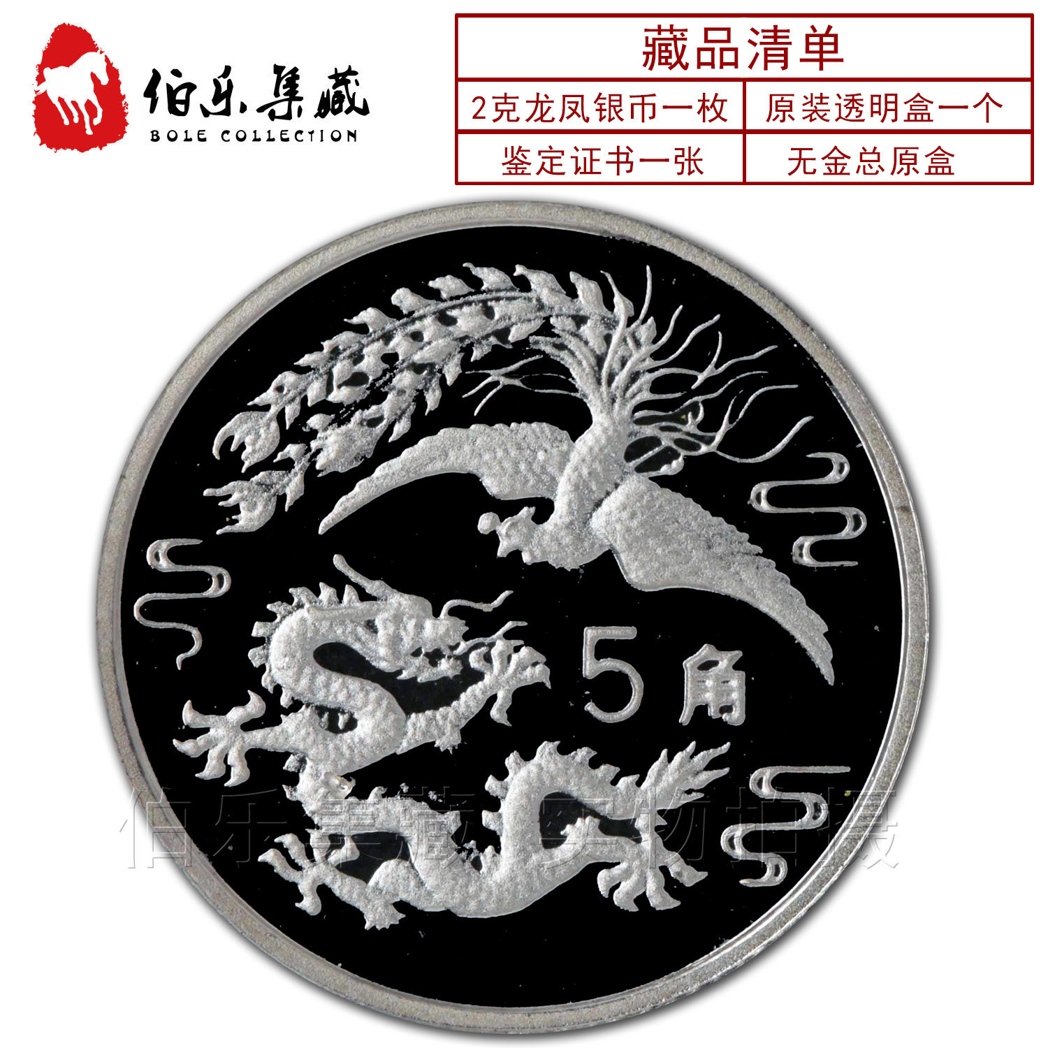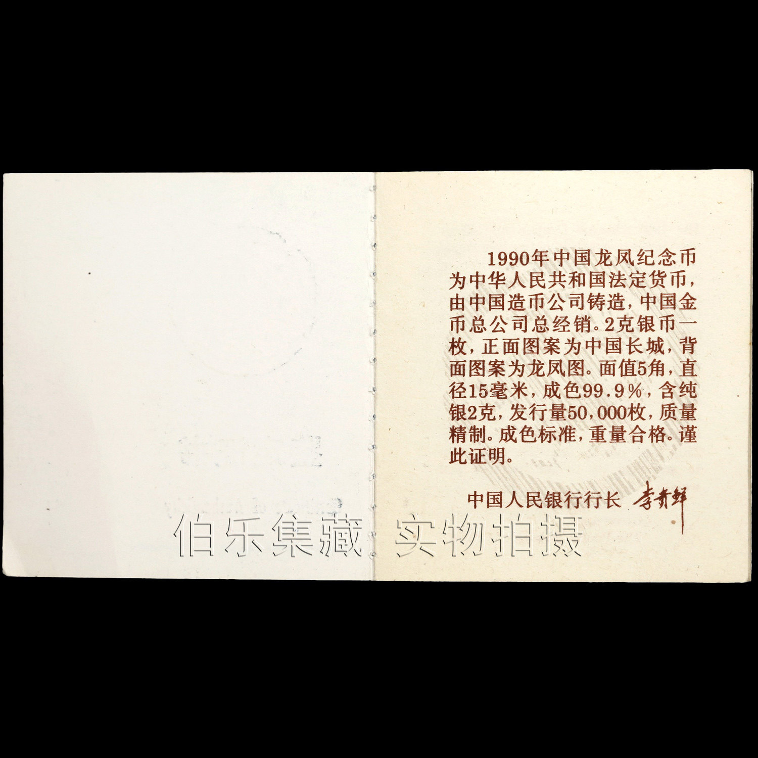 [New Bazhen] Сертификат с наименьшей стоимостью серебряной монеты в 2 граммах серебряных монет Dragon и Phoenix в 1990 году