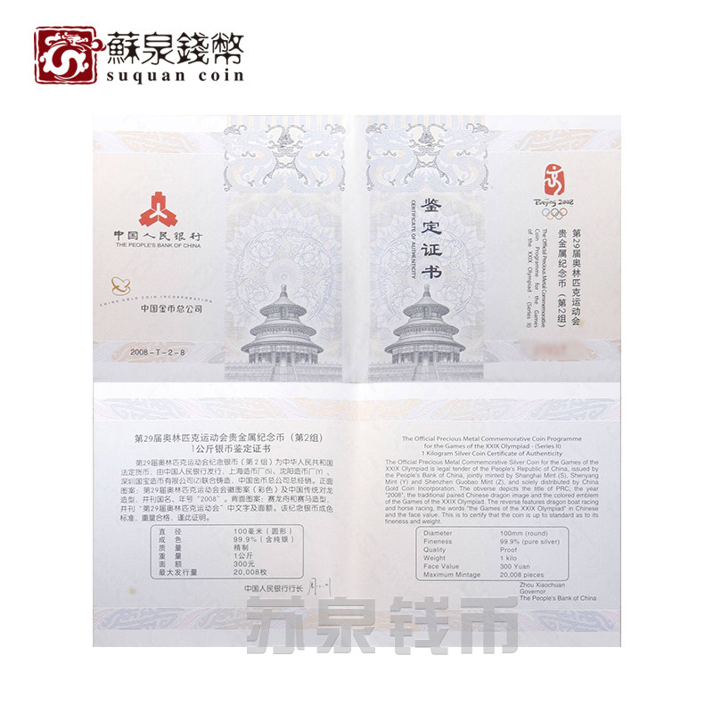 2008 1 кг, 29 -й Олимпийские игры 2 Dragon Boat Caleee Принесите серебряную монету олимпийского цвета коробки