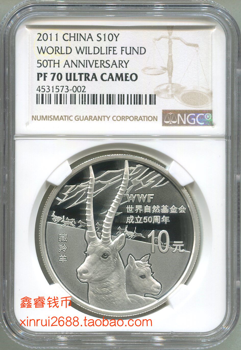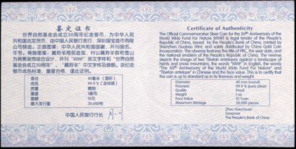 В 2011 году, 1 унция памятной серебряной монеты для 50 -летия основания Фонда Природы, NGC Rate Coin, PF 70 баллов с сертификатом.