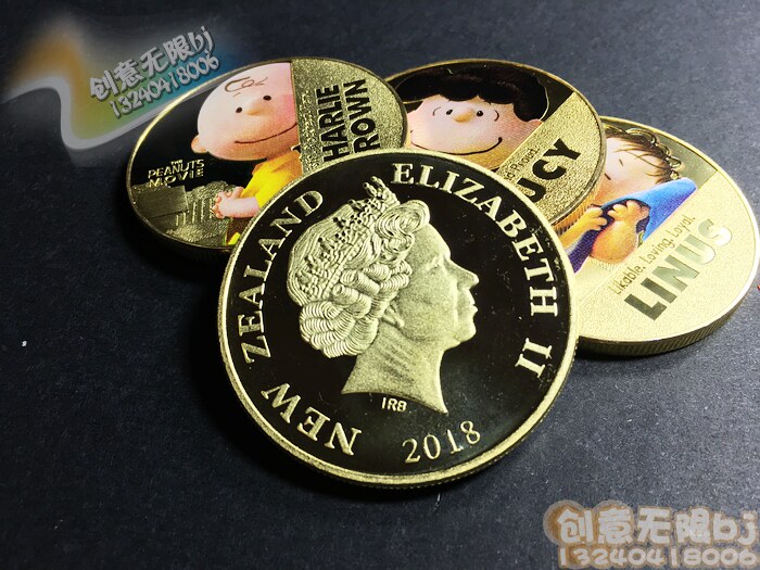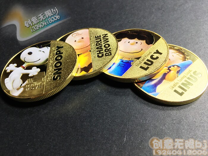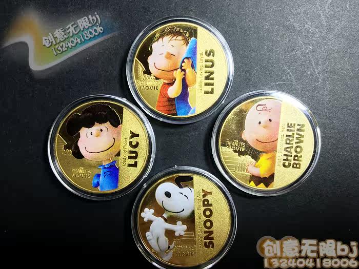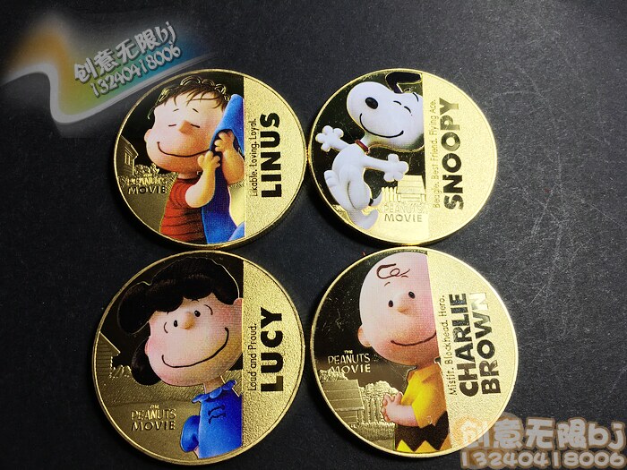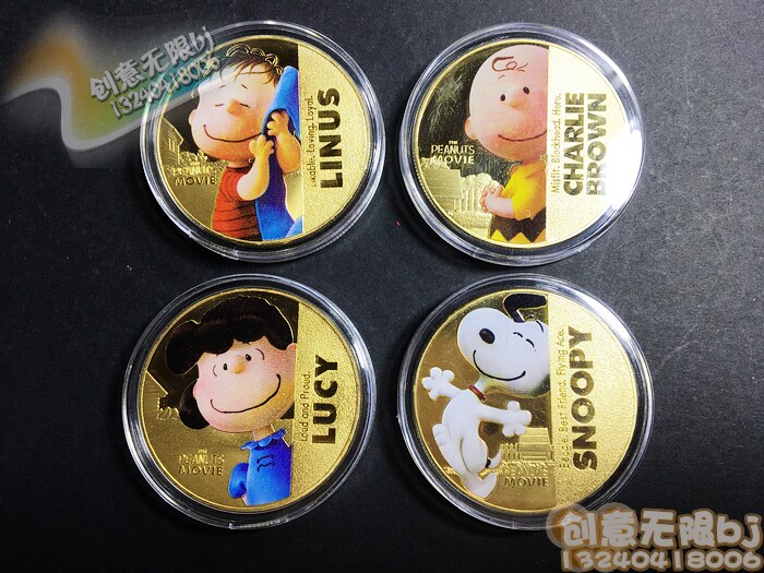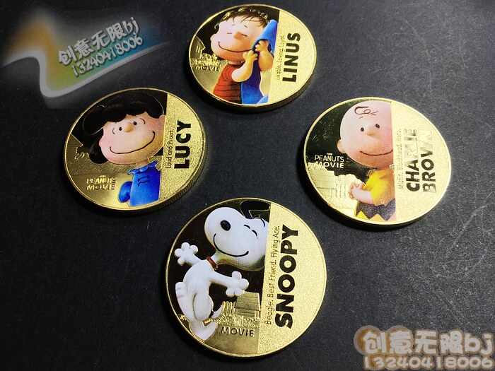 Четыре комплекта сериала Snoopy Series Memoryorative, арахис, большие фильмы с арахисом, коллекция New Elyne Memorial Gold Coin, детские стоматологические подарки золотой монеты, мужчины и девочки
