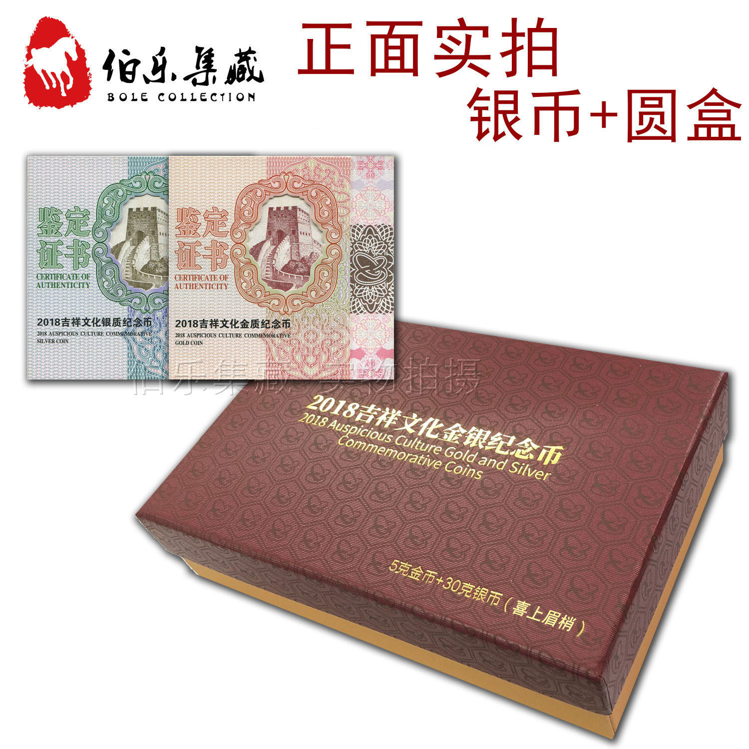 [Новый Баозен] 5 граммов золота+30 грамм серебряной оригинальной коробки Оригинальный сертификат 2018 года благоприятной культуры радостное золото и серебряные монеты.