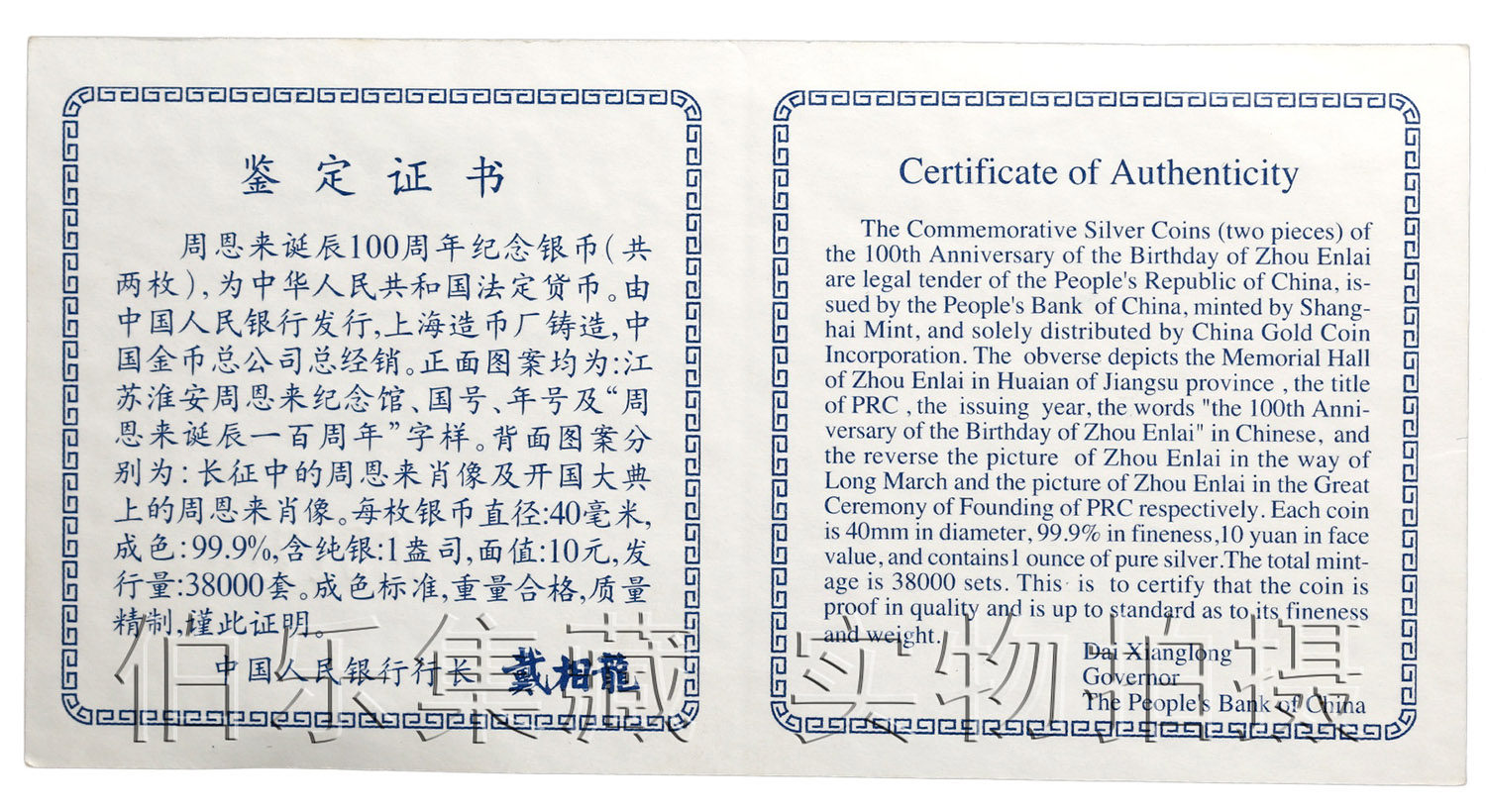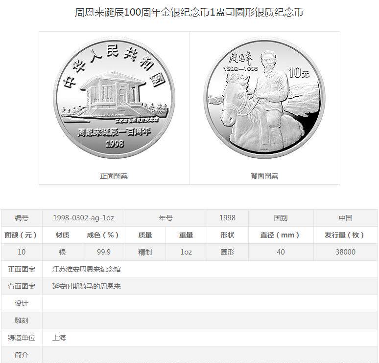 [New Bazhen] Оригинальная коробка оригинальной коробки 1998 года 100 -летие Чжоу Энлай в серебряных монетах Чжоу Энлай
