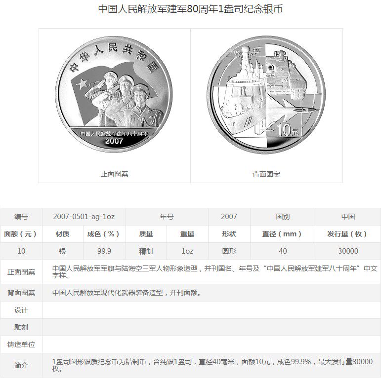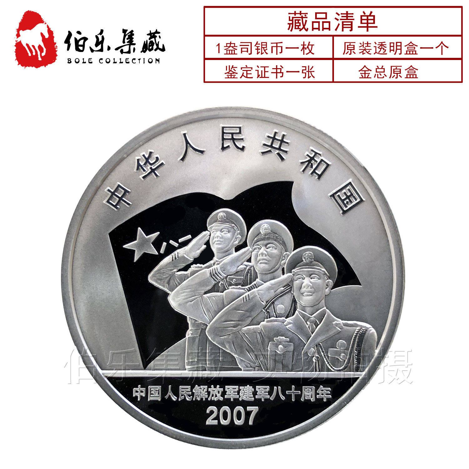 Первоначальная коробка первоначального сертификата 2007 года была создана 1 унция 80 -й годовщины Армии -основателя китайской народной армии освобождения