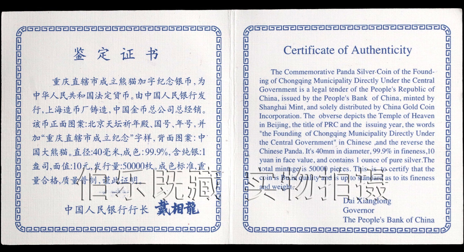 [New Bazhen] Оригинальный сертификат коробки 1997 г. 1 унция муниципалитет Чунцин установил памятную серебряную монету Panda Plus Word