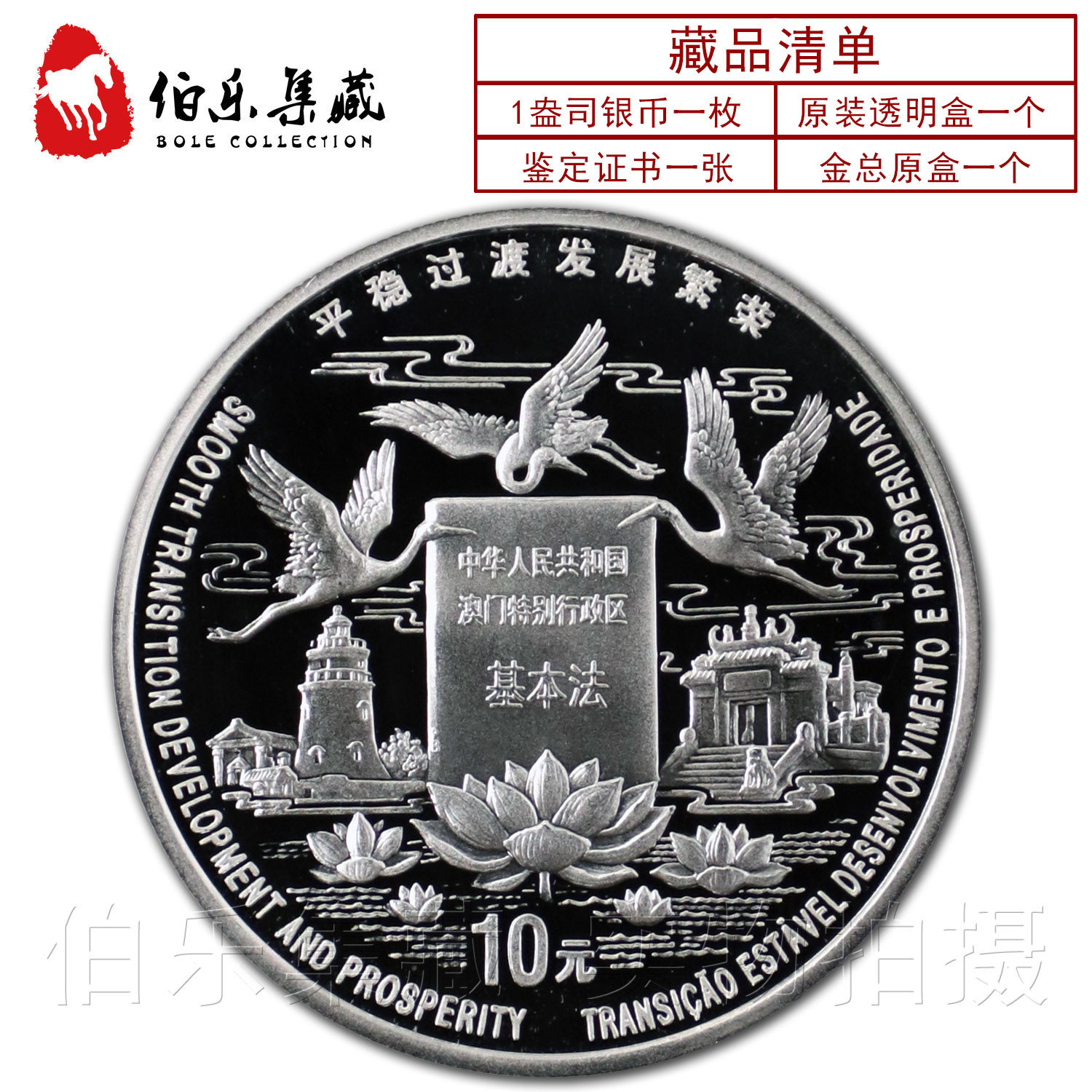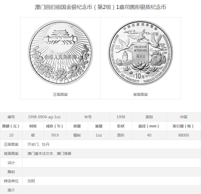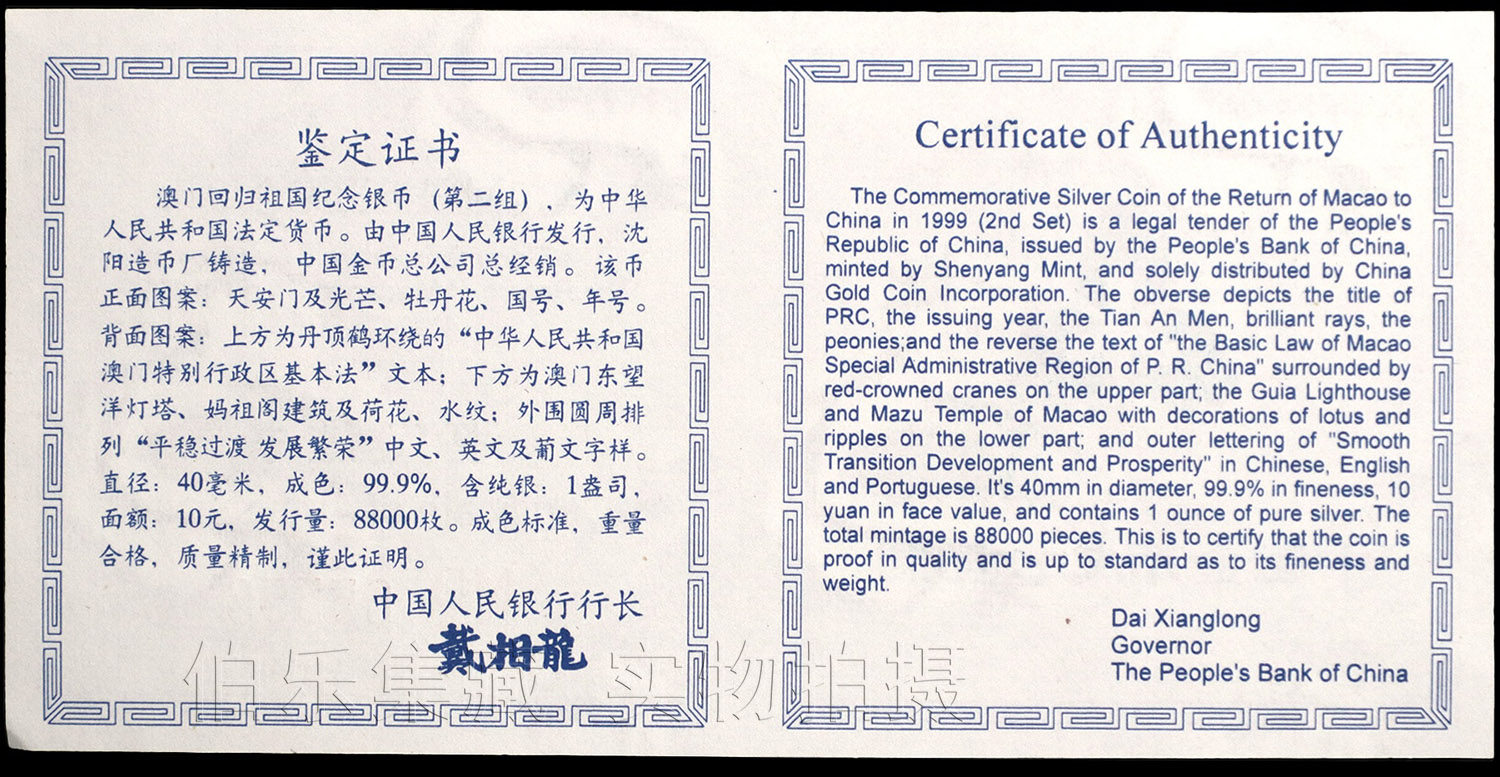 [New Bazhen] Оригинальный сертификат коробки 1998 года 1 унция Макау вернулась ко второй группе памятных серебряных монет в родине