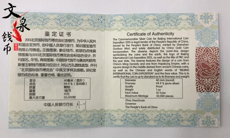 2013 Пекинская международная монета Expo Silver Coin. 1 унция серебряная монета.