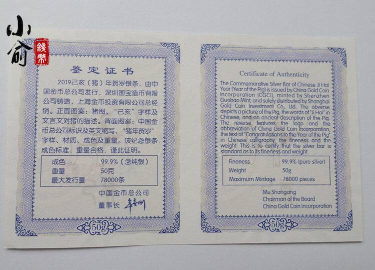 Gold Coin Corporation. 2019 Год Новогоднего Серебряного Бар 50 Г Золотая свинья Новый год серебряный бар .50G Свинька Новая годовая полоса
