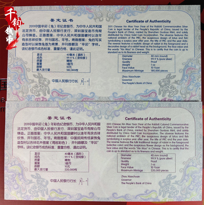 Специальное предложение в 2011 году 1 унции серебряного кролика+1 унции цвета серебряного кролика каждый.
