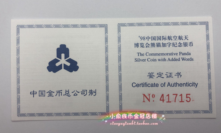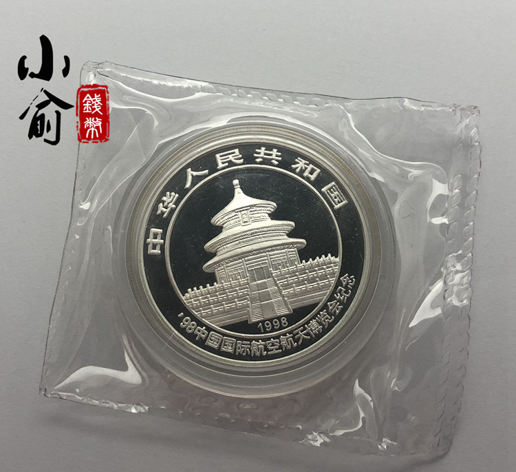 1998 Китайская международная аэрокосмическая ярмарка Панда плюс серебряные монеты .1 унция.