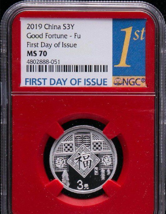 [NGC рейтинг 70 баллов] Сертификат с сертификатом 2019 г. 8 грамм новогодних серебряных монет 3 Юань благословение в первый день красной коробки