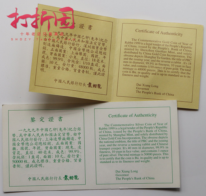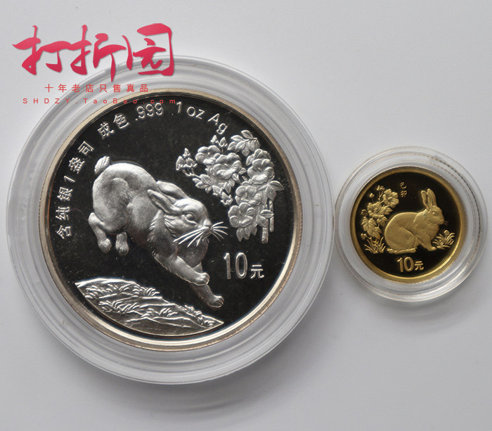 Серебряная монета, 1999 года, год кролика, золото и серебро