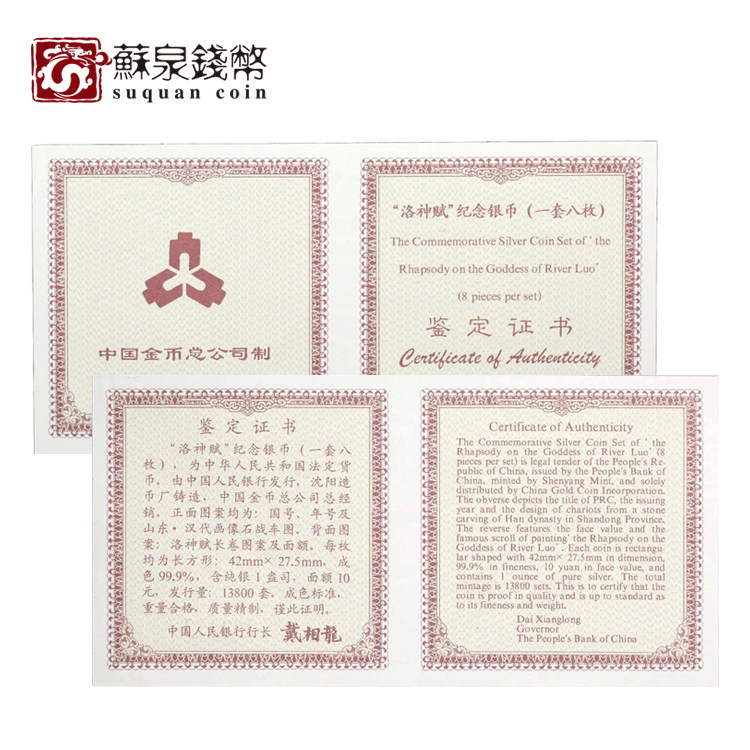 В 1999 году древняя знаменитая картина Luo Shenfu Long Square Silver Coin 1 унция 8 серебряные монеты Luo Shenfu с карточкой с картой
