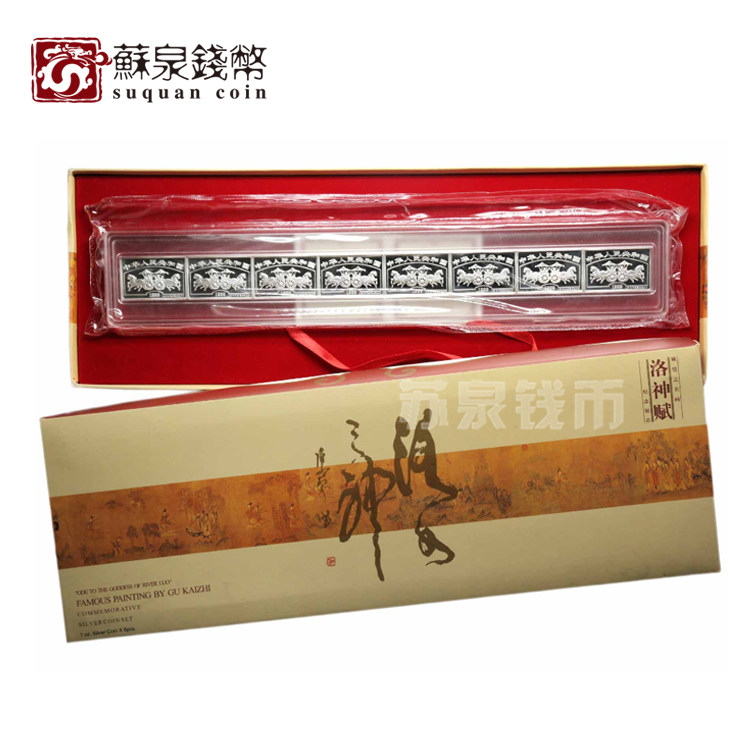 1999 Китайские знаменитые серии картин Luo Shenfu Серебряные монеты 1 унция*8 штук с лицензированной коробкой Luo Shenfu Silver Conins