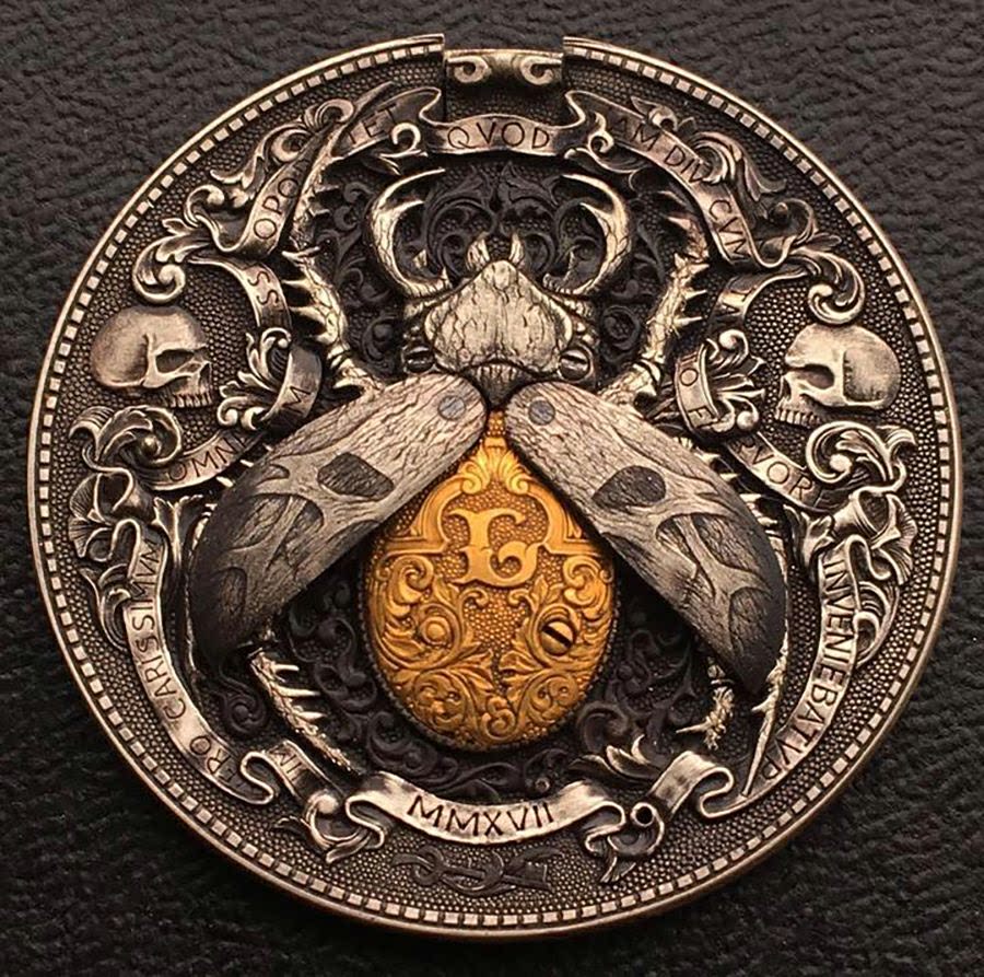 Вдохновленная почти забытой историей Эдгара Аллена По, золотая ошибка Bookeen представляет собой замыслованную вырезанный Morgan Dollar, скрывая кнопку, которая активирует крылья жука, обнажая десятую унцию твердого золота. Декабрь 2017 года за колоссальные девять тысяч двести долларов.