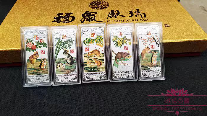 Набор красочных памятных серебряных слитков 2020 года Крысы, 30 г*5 штук, один размер 30*70 мм,