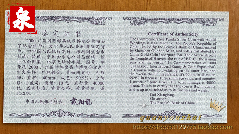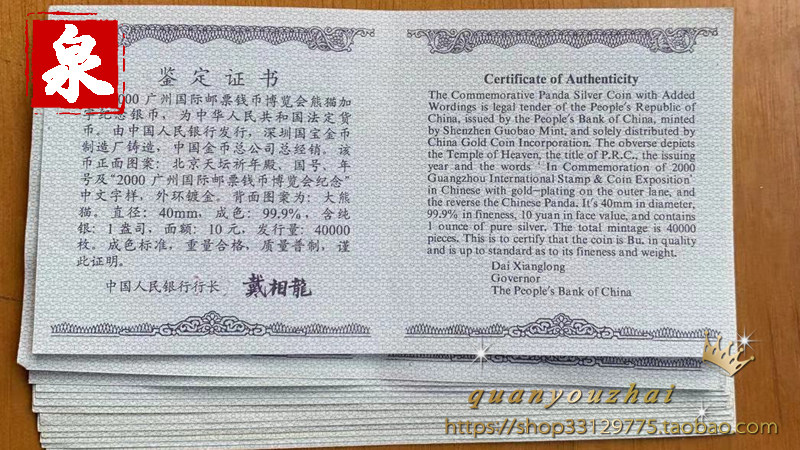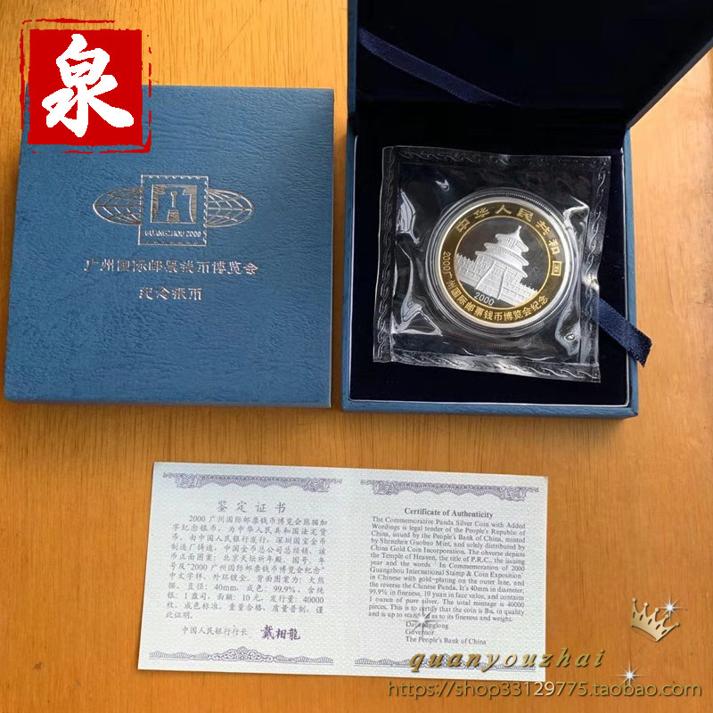 2000 Guangzhou Mast Coin Expo Panda Добавление слов 1 унция сертификата серебряной монеты оригинальная коробка выставка серебряная монета