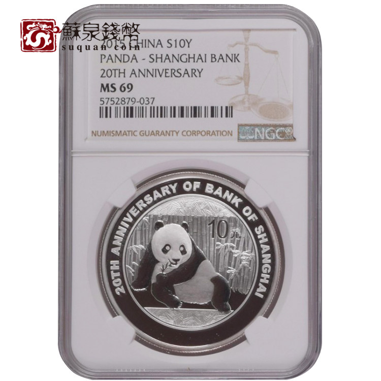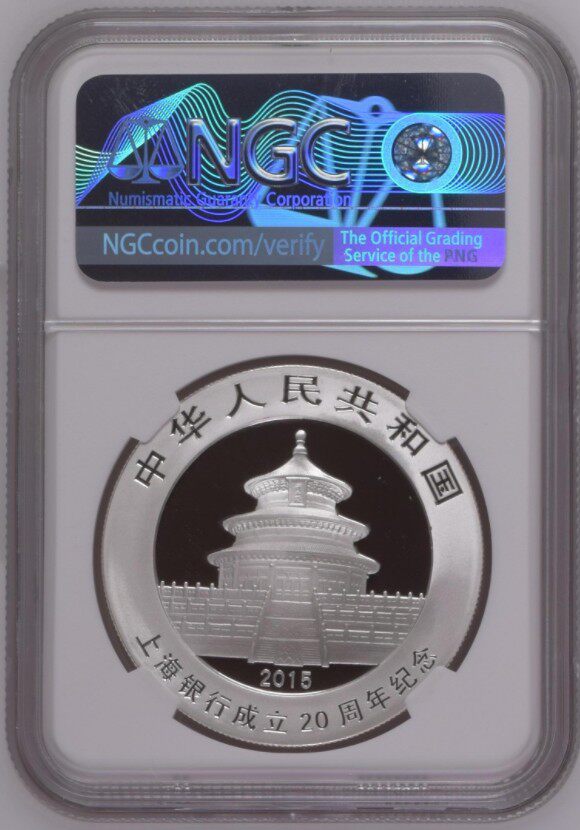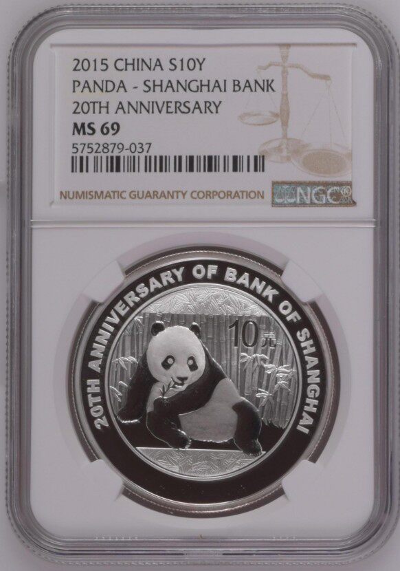 2015 1 унция Серебряная монета для 20 -летия создания Шанхайского банка, NGC Rate Moin с 69 баллами, с сертификатом, Panda добавила персонажи