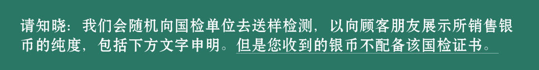 Точка зрения менеджера магазина:Серебряные монеты Panda, которые мы приобрели, принадлежат у авторизованных дилеров корпорации Gold Coin, которая гарантирована им, и мы проверим каждую часть.