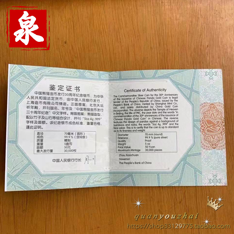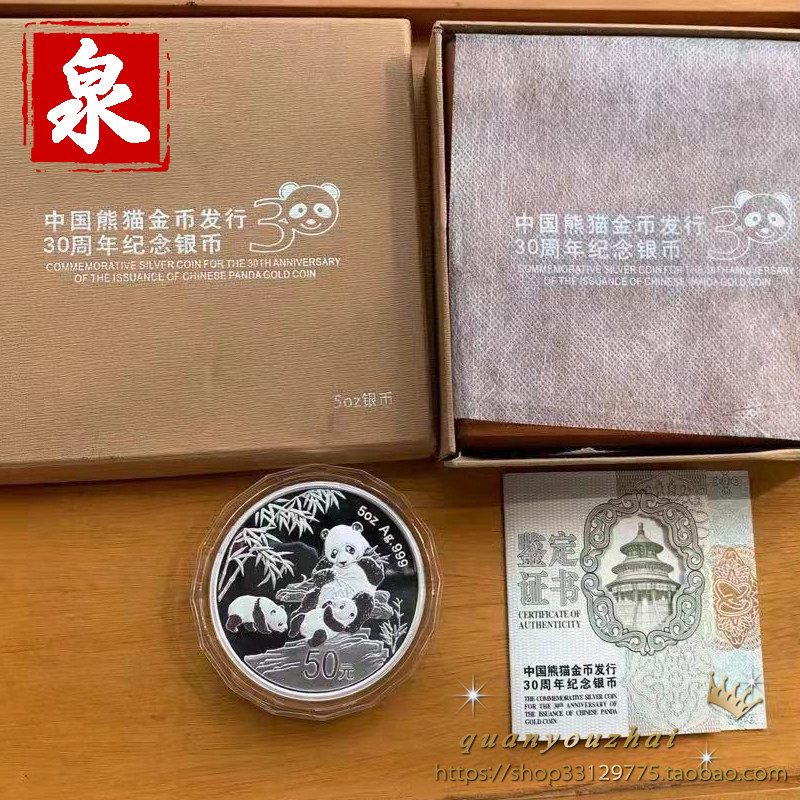 30 -й годовщина выдачи золотых монет Panda в 2012 году 5 унций серебряной монеты Panda Silver Coin Сертификат Panda. Оригинальная коробка