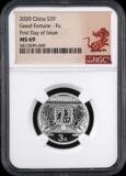 [NGC RAGITE 69 очков] Принесите сертификат в 2020 году, 8 граммов новогоднего благословения серебряной монеты, Zodiac Smart -Cut Paper -Cut Mouse