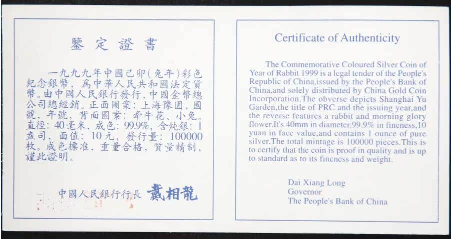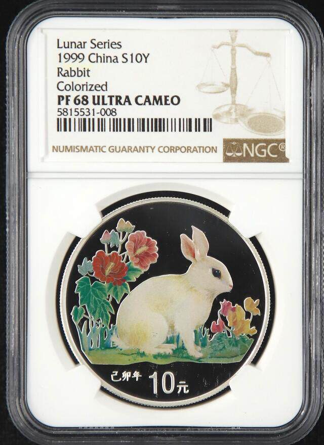 [NGC Rating 68 баллов] Сертификат с сертификатом 1999 года 1 унции кролика кролика, китайский цвет серебряной монеты китайского зодиака серебряный кролик