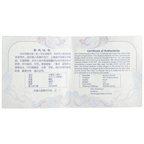 Серебряная монета, 2012 года, 080555 размер