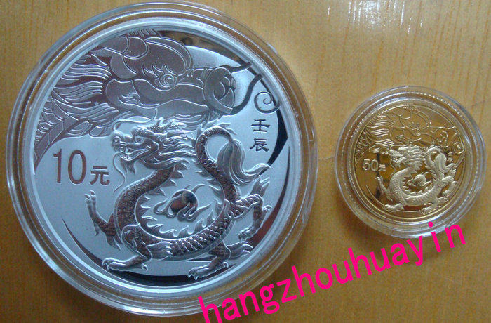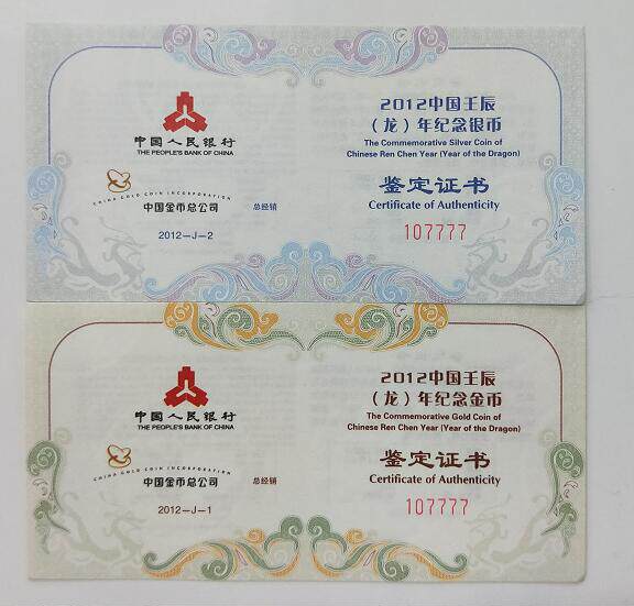 2012 Зодиак Дракон Дейл Цвет Золотой и Серебряный набор 1/10 унций Золото 1 унции номера сертификата Серебряного Дракона с 4 номером леопарда