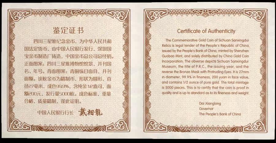 [NGC RAGITE 69 баллов] Сертификат 1/2 унции памятной золотой монеты Sanxingdui с сертификатом в 2002 году