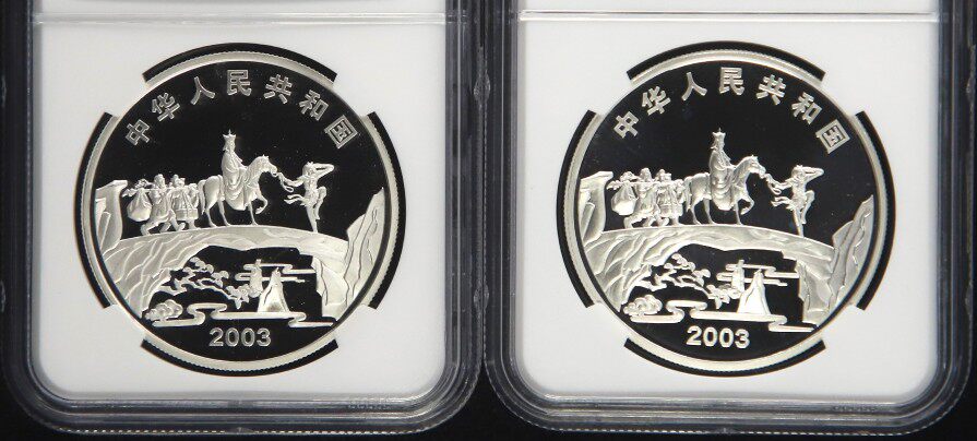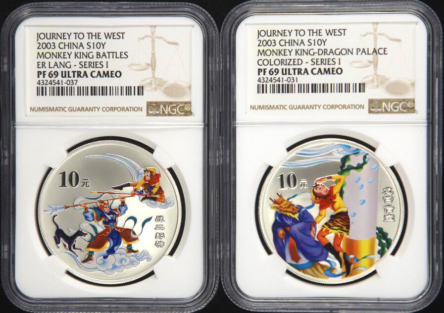 [NGC рейтинг 69 очков] Принесите сертификат в 2003 году 1 унция четырех основных туристических групп 1 Цветная серебряная монета