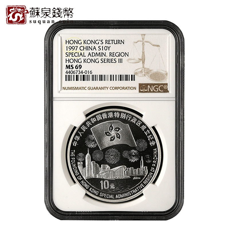 NGC Rate Vurrance 1997 Гонконг вернулся в родину, чтобы отметить серебряную монету № 3 Группа 1 унция Гонконг Серебряная монета 69 очков