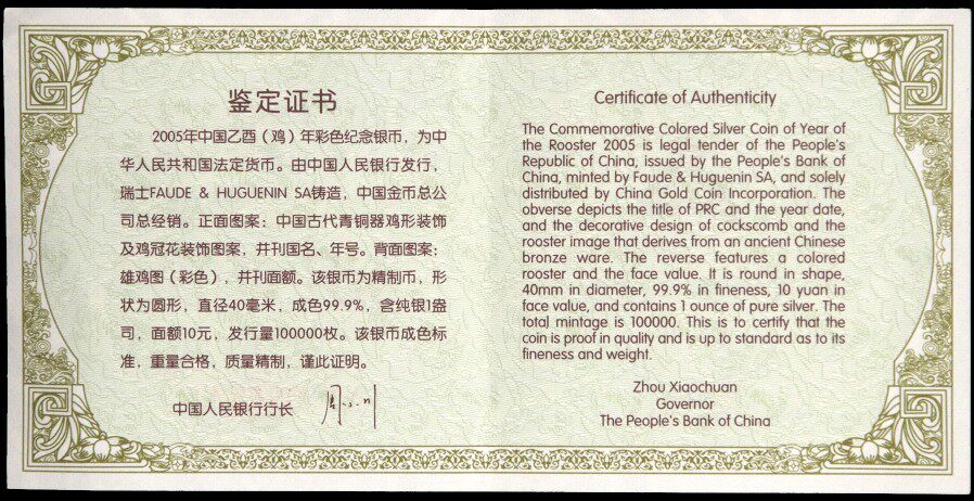 [NGC Rating 69 очков] Сертификат 2005 г. 1 унция куриных цыплят, цветные серебряные монеты Цветные серебряные курица
